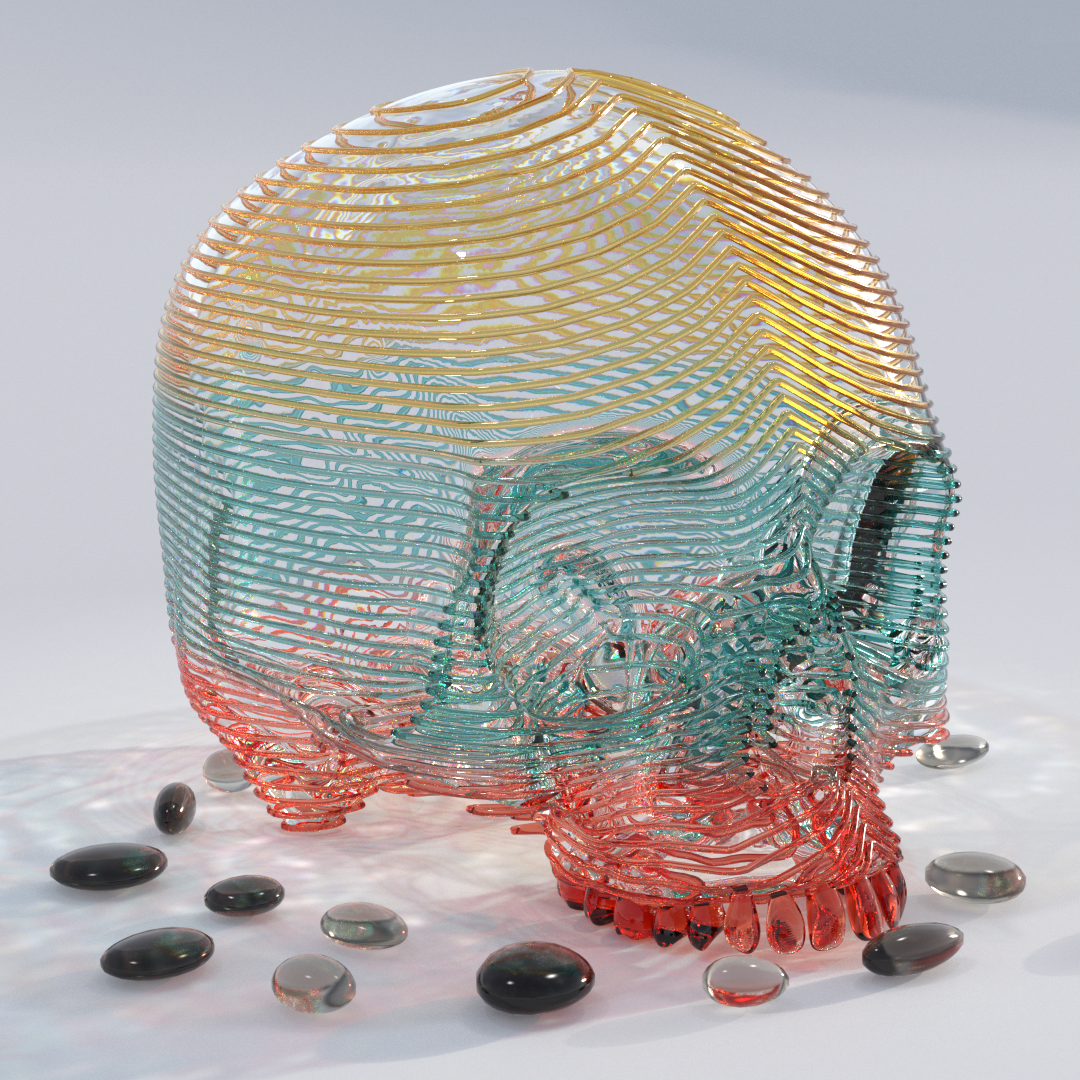 Experimenting with caustics in Cinema 4D & Redshift. The glass strings were created in Side FX Houdini using the seam function on the boolean node.